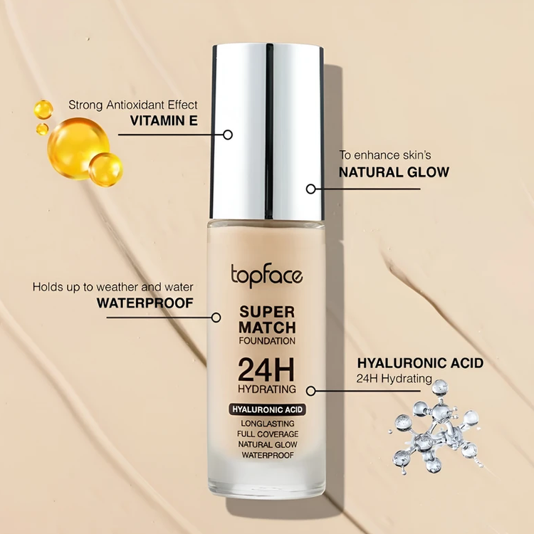 فرمول کرم پودر تاپ فیس مدل SUPER MATCH بهگونهای طراحی شده که نه فقط ظاهر پوست را بهبود دهد، بلکه احساس راحتی روی پوست هم ایجاد کند. برخی ترکیبات مهم عبارتند از: